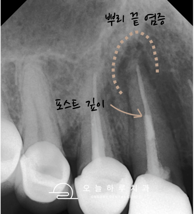 ☑️ 실제 치료 사례 – 고름집이 생긴 포스트 치아