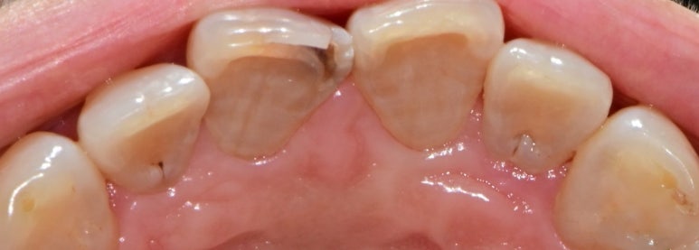앞니가 검게 변하고 조금씩 깨지기 시작했다며