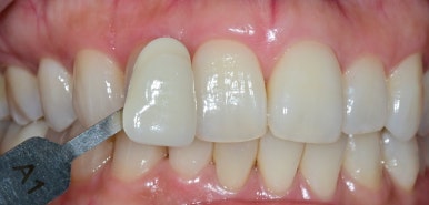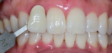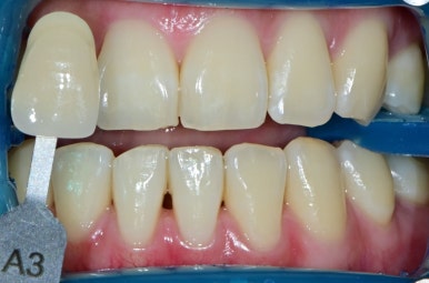 - 미백 전 치아의 색조를 쉐이드 가이드를 통해 정확히 측정합니다.