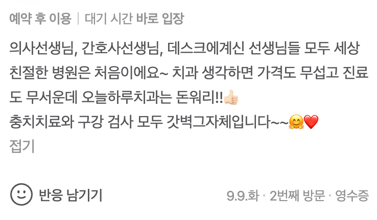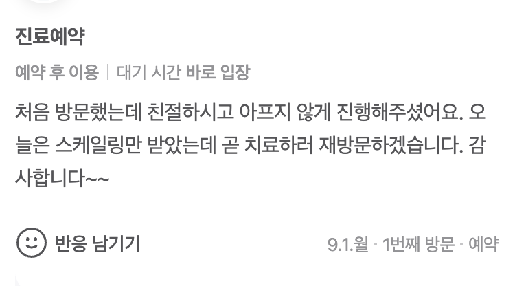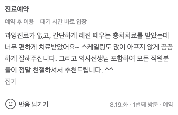 - ✅ 리뷰로도 인정받은 친절한 치과